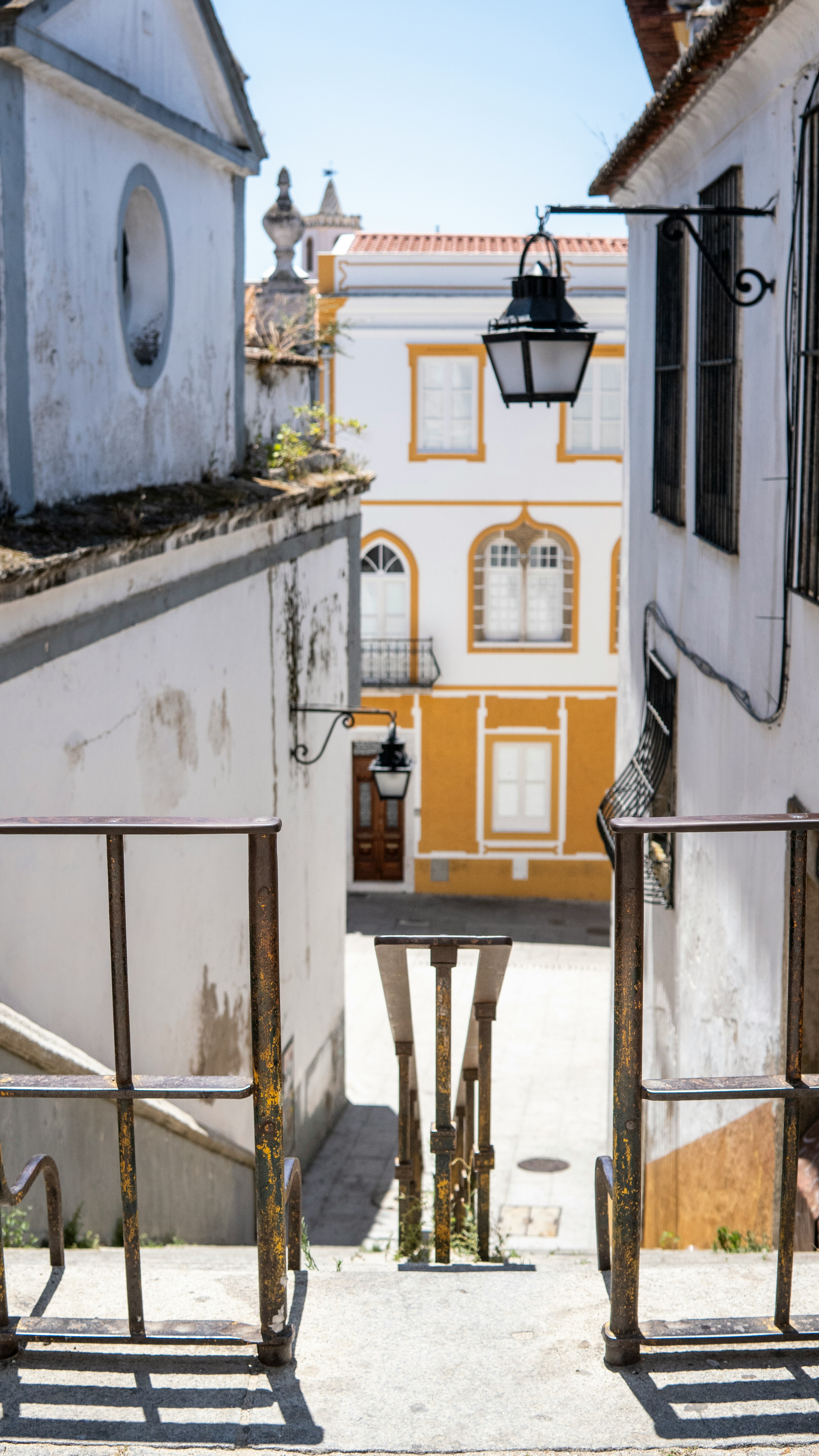Ci siamo fermati in una stazione di servizio in mezzo alla campagna dorata per un rapido rifornimento di caffè. Quando siamo arrivati a Évora, per fortuna, avevo ormai ripreso la mano e sono riuscita a parcheggiare anche in pendenza. Évora è un luogo incredibilmente instagrammabile, con i suoi edifici bianchi, gialli e azzurri.
