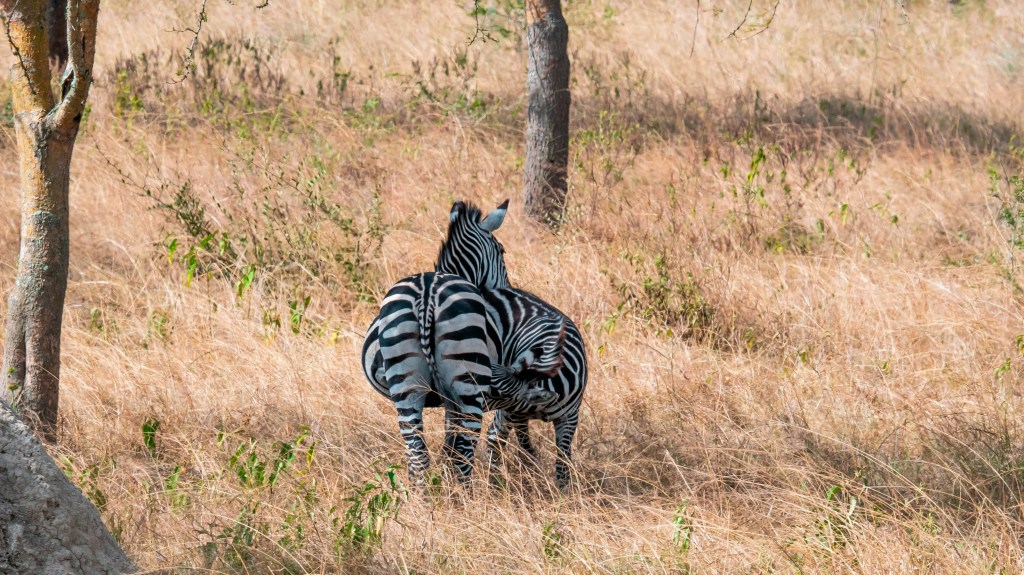 Nel pomeriggio arriviamo finalmente al lago e scorgiamo le prime zebre. Sembrano pony in pigiama. Ci fermiamo a fotografare una mandria di zebù, ed ecco che, dal nulla, spunta una folla di bambini. Ci chiamano “Muzungu!” e spuntano manine ovunque, che cercano di aprire i finestrini. Sembra quasi una scena uscita da The Walking Dead.