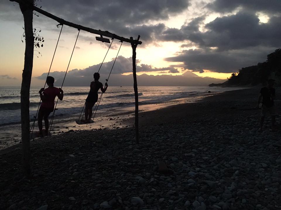 Lungo la strada ci siamo fermati in un baretto sulla spiaggia per prendere patatine fritte. Il tramonto era mozzafiato e in sottofondo ci hanno messo la versione indonesiana di Despacito.