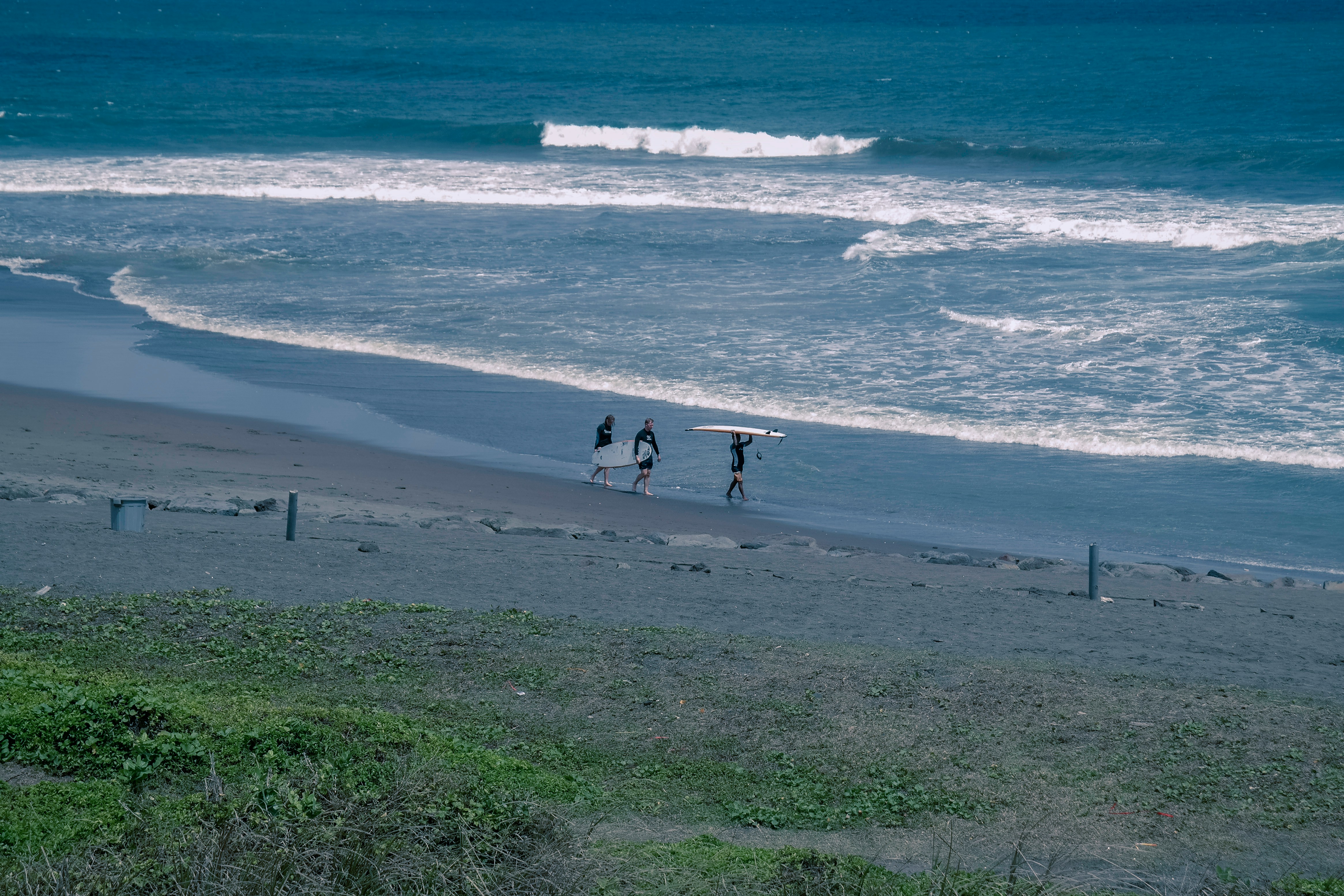 Nel pomeriggio le onde sono diventate più alte. Le tavole si impennano e, quando si cade giù, bisogna aprire gli occhi sott’acqua per controllare che siano passate sopra la nostra testa e non ci colpiscano forte, spinte dalla forza della corrente. Quando rientriamo dalla spiaggia, però, camminando con le tavole sulla testa, sembriamo quasi dei surfisti veri.
