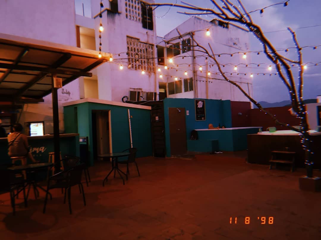 Sul terrazzo dell’ostello c’è una luce arancione spettacolare e una vista a 360° sui tetti sgangherati della città. Al tramonto aprono il bar, attivano le due Jacuzzi, si accendono i fili di lucine, e alla radio trasmettono Manu Chao. Il Gruppo Disagio si è sistemato su qualche sdraio, da lì ci passiamo delle sigarette. Mi sono legata in vita il sari verde che ho portato a casa dall’Indonesia, ho una bottiglia di Club Colombia in mano, mi sento bene. Per un attimo, è come avere 14 anni di nuovo… però molto meglio.