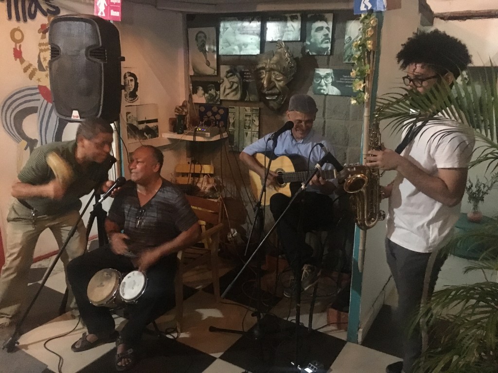 La serata l’abbiamo conclusa al tavolino di un bar con sedie tutte scompagnate. Il proprietario ha persino mandato via i precedenti occupanti per farci spazio (ok). Poi è spuntato con una serie di bicchierini da shot (sei, tutti diversi) e ci ha versato del rum Medellin senza troppe cerimonie (ok).