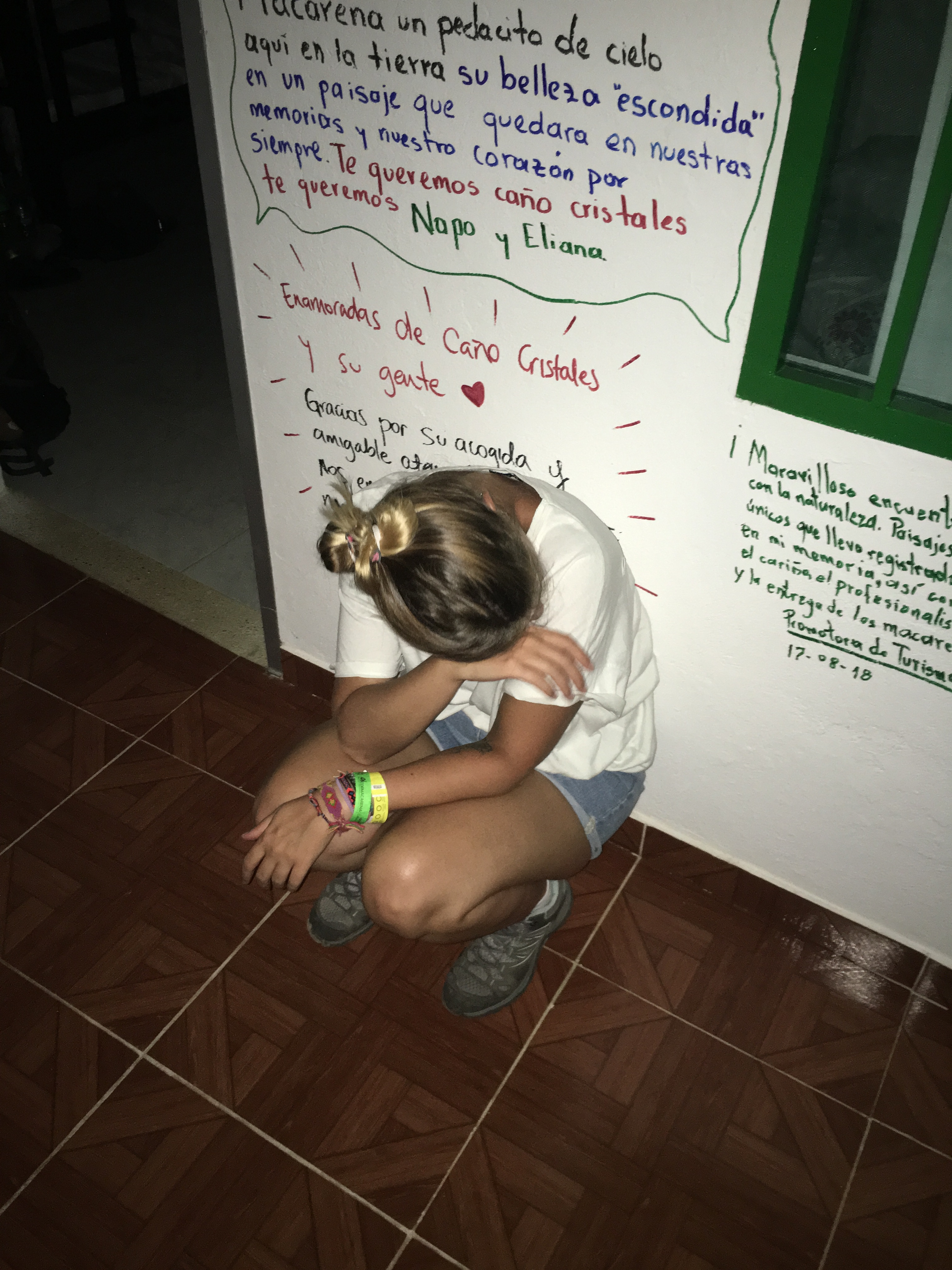 Prima tappa: briefing. Ci ammassiamo in una stanza soffocante, dove le sedie di plastica non bastano per tutti. Qui ci spiegano che Caño Cristales è una riserva naturale e che quindi sono vietatissimi crema solare, repellente per insetti e qualsiasi forma di plastica usa e getta. Ma tranquilli, ci pensano loro a venderci delle borracce… di plastica. La mia, ovviamente, perde.