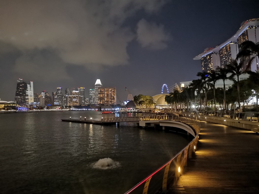 Il Marina Bay Sands è l’edificio simbolo della città. Tre grattacieli alti 200 metri, collegati in cima da una piattaforma sospesa a forma di tavola da surf, chiamata SkyPark, con giardini pensili, ristoranti pettinati e la famosissima piscina a sfioro. Offre una vista spettacolare sulla baia e sulla città. Ci sono un enorme casinò con piscine navigabili in stile Venezia, negozi di lusso, ristoranti stellati e praticamente ogni altra cosa. L’ascensore che ci porta sul rooftop è tutto dorato e mentre saliamo ci si tappano le orecchie.