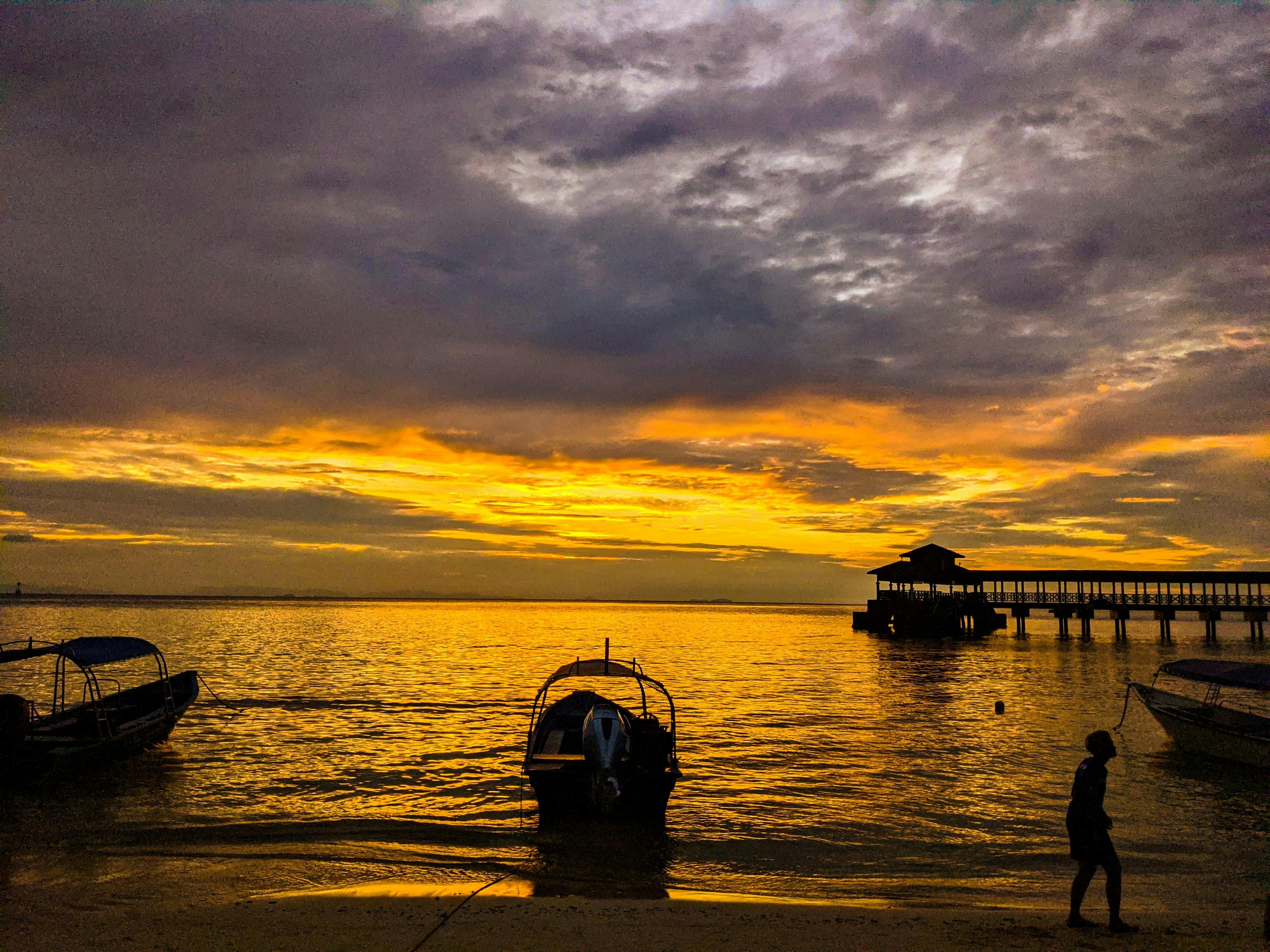 Una sera decidiamo di farci portare in barca sull’altro lato dell’isola per il tramonto. Qui il paesaggio cambia: tre resort di lusso, famiglie ordinate e coppiette che non hanno mai nemmeno cambiato gli euro che avevano nel portafoglio. Bellino, sì. Ma, sinceramente? Preferisco la mia sgangherata spiaggia, con le patatine smarze e pure i topi.