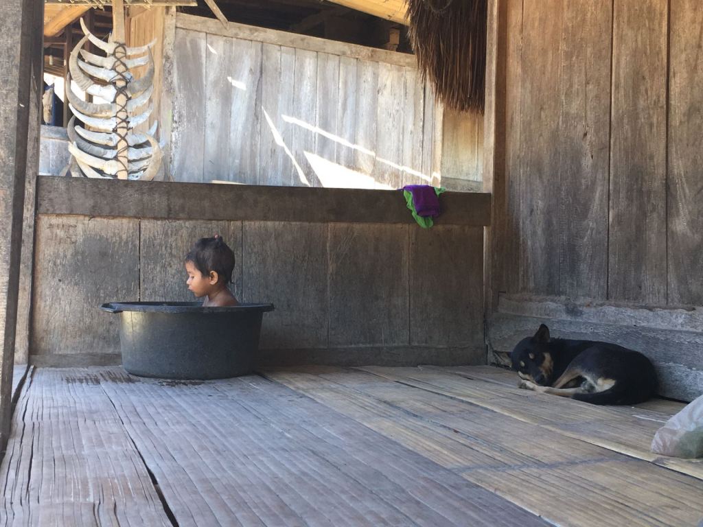 Dopo che avevo rischiato di annegare in una sorgente termale e numerose altre ore di trasferimento, quando ormai era già sera, siamo arrivati in una specie di comune hippie. Un sacco di capannine con il tetto di paglia e murales colorati sui muri, il tutto sopra un bel praticello verde. L’acqua calda non c’era (nessuna…